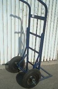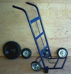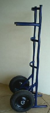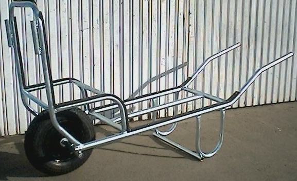 Carrinho em tubo de aço galvanizado e com protecão em borrachas, com Pneus 350x8, aro com 2 rolamentos de esfera, tornado mais estavel a dirigibilidade com a carga.